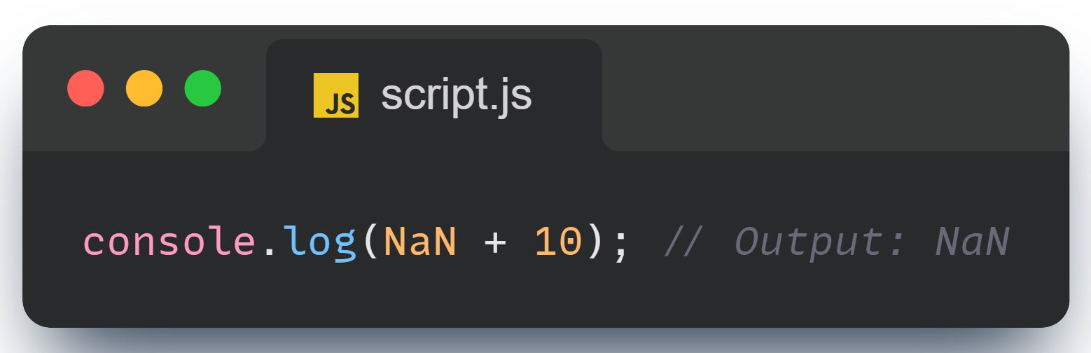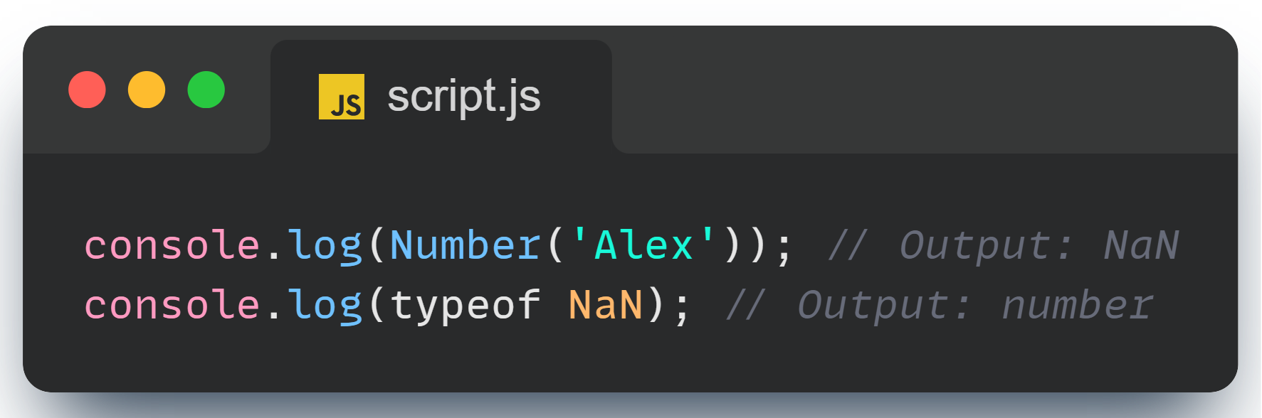 is still considered a number type in JavaScript. It’s a bit like calling something a "non-existent apple"—it’s not an apple, but it still falls under the category of apples.